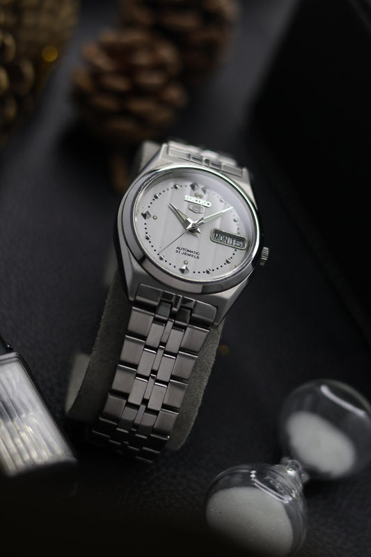(Super Rare) Seiko 5 White Motif Dial with Glass Back - Automatic Vintage Watch (Pre Owned) - SE572