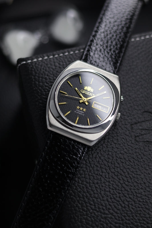 (Super Rare) Orient Tri-Star Crystal Black Textured Dial - Automatic Vintage Watch (Pre Owned) - SE648