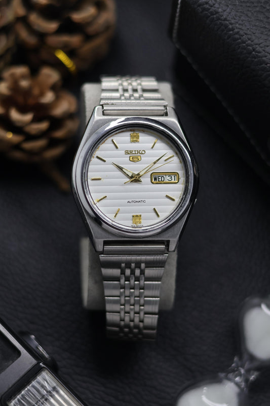 (Super Rare) Seiko 5 White Lined Dial - Automatic Vintage Watch (Pre Owned) - SE654