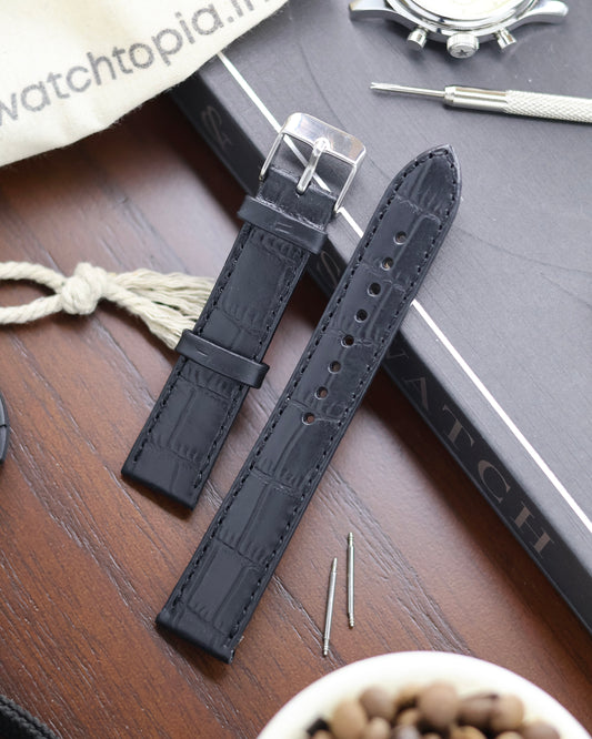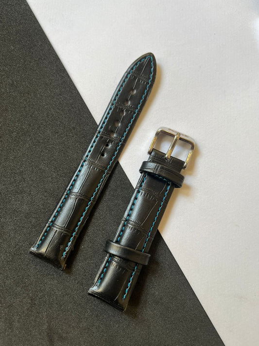 White Stitch Black Croc Leather Watch Strap (18mm)