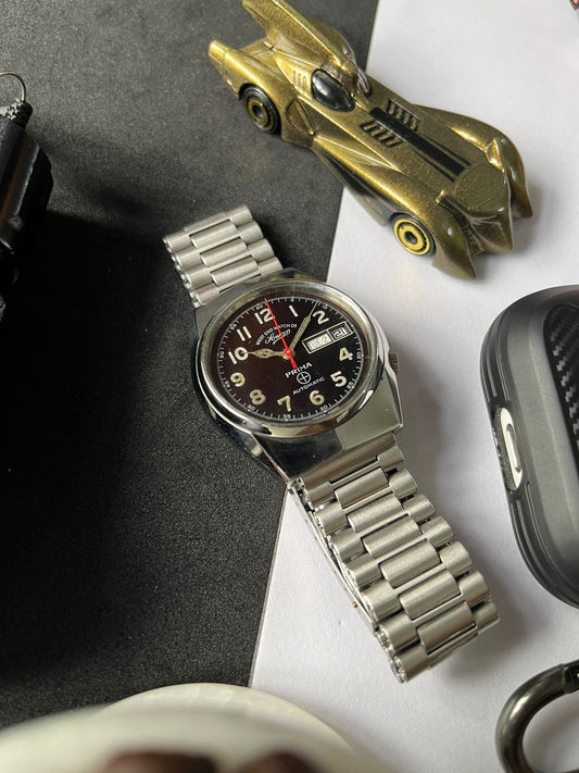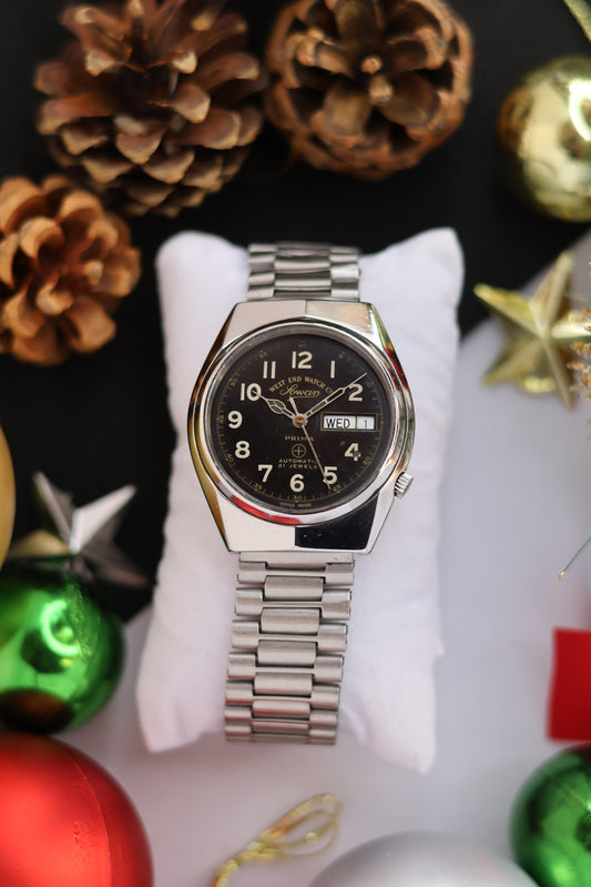 (Super Rare) West End Watch Co Sowar Prima Black Dial with Fluted Bezel & Presidential Bracelet - Automatic Vintage Watch (Pre Owned) - SE421