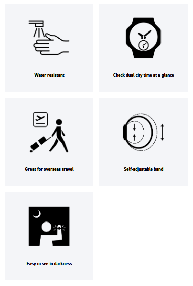 World time 31 time zones (48 cities + coordinated universal time), daylight saving on/off, Home city/World time city swapping