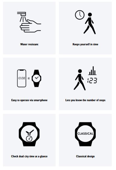 Bluetooth: Connects to a smartphone and automatically adjusts the time