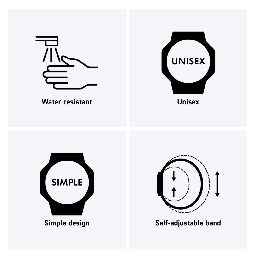 Regular timekeeping: Digital: Hour, minute, second, pm, date, day