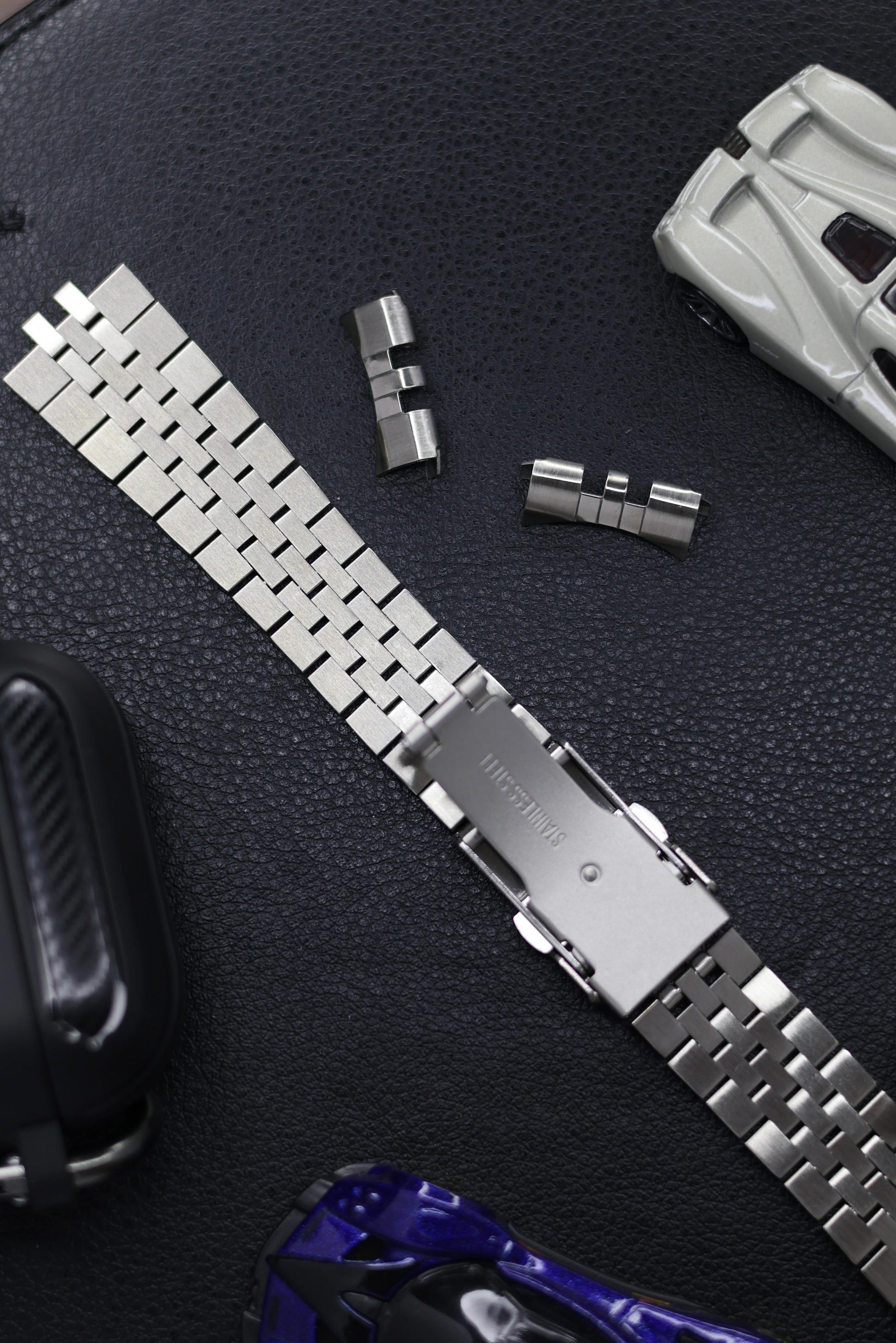 Curved End Jubilee Bracelet Watch Strap - Solid Link (Check Compatibility in Description)