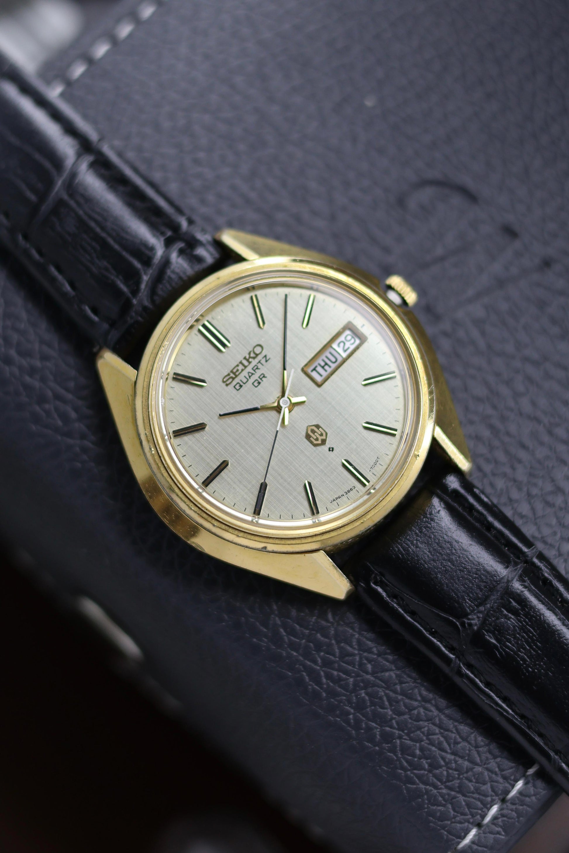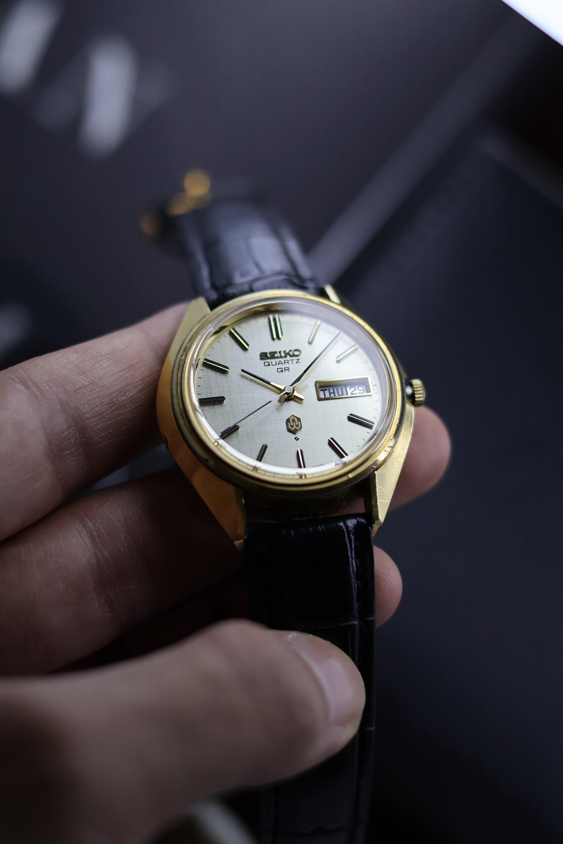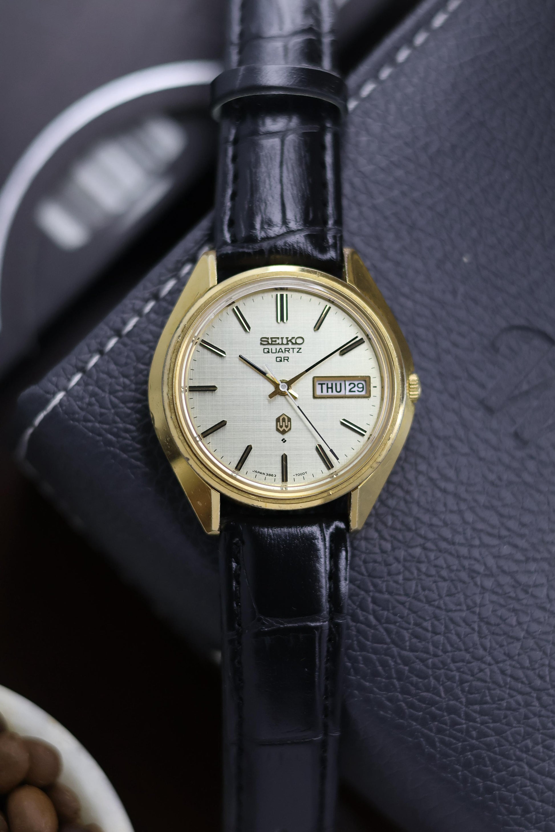 (JDM - Extremely Rare) 1983 Seiko QR Linen Dial with Gold Plated Case - Quartz Vintage Watch (Pre Owned) - A230