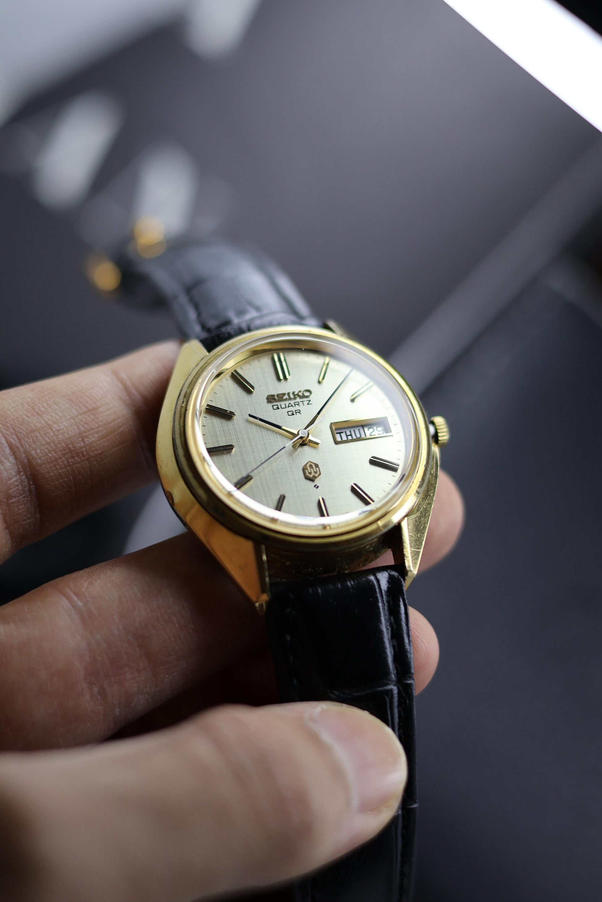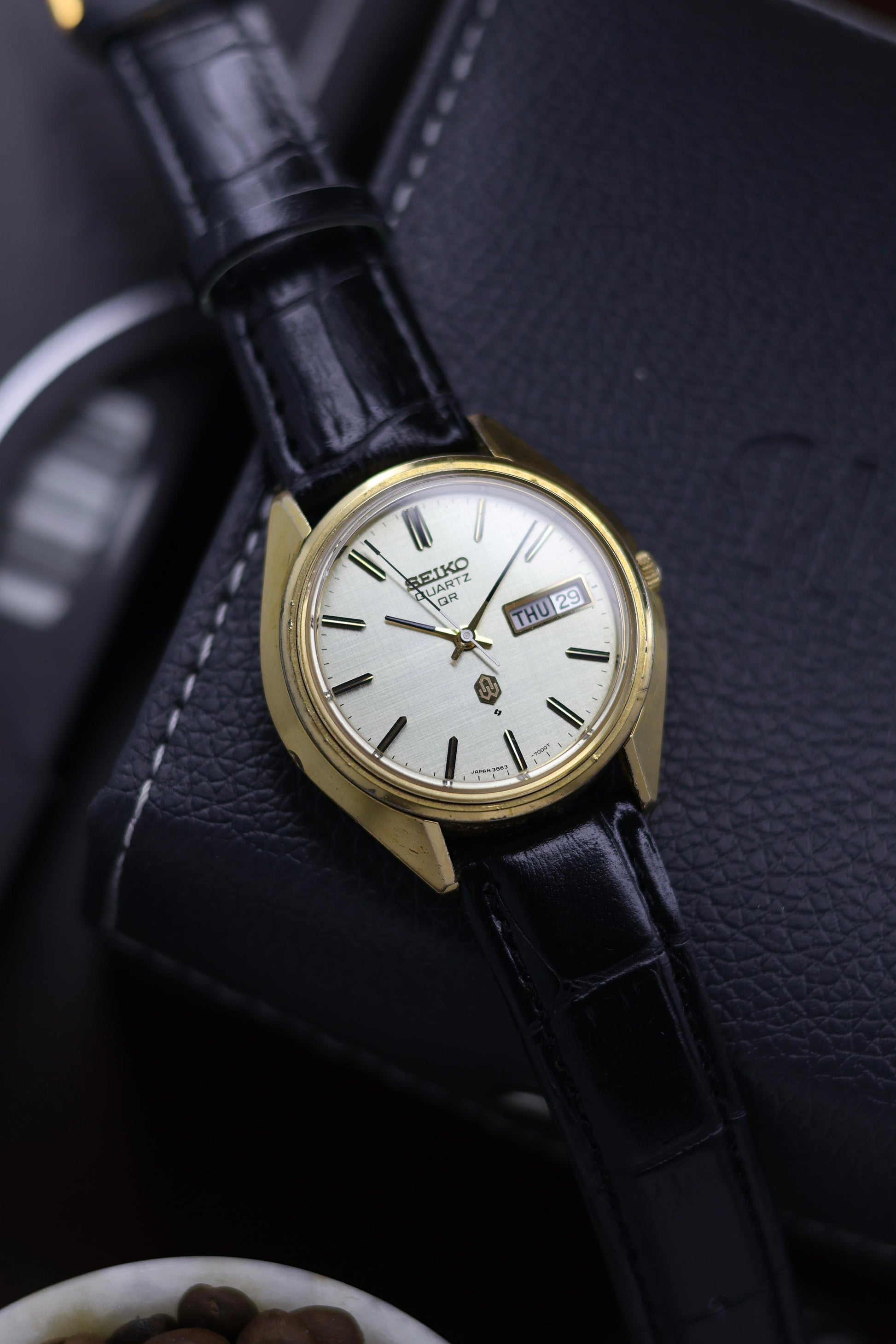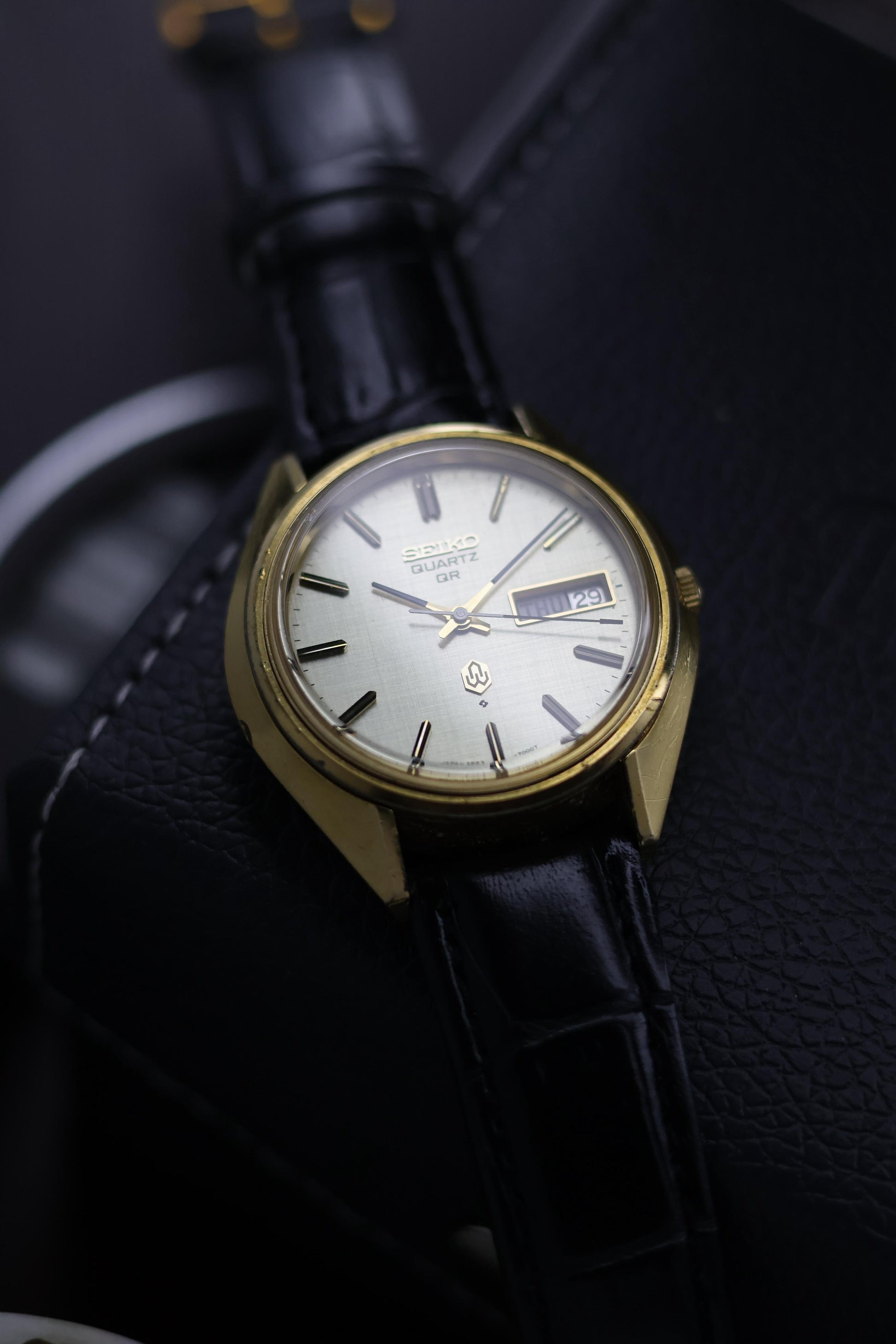(JDM - Extremely Rare) 1983 Seiko QR Linen Dial with Gold Plated Case - Quartz Vintage Watch (Pre Owned) - A230