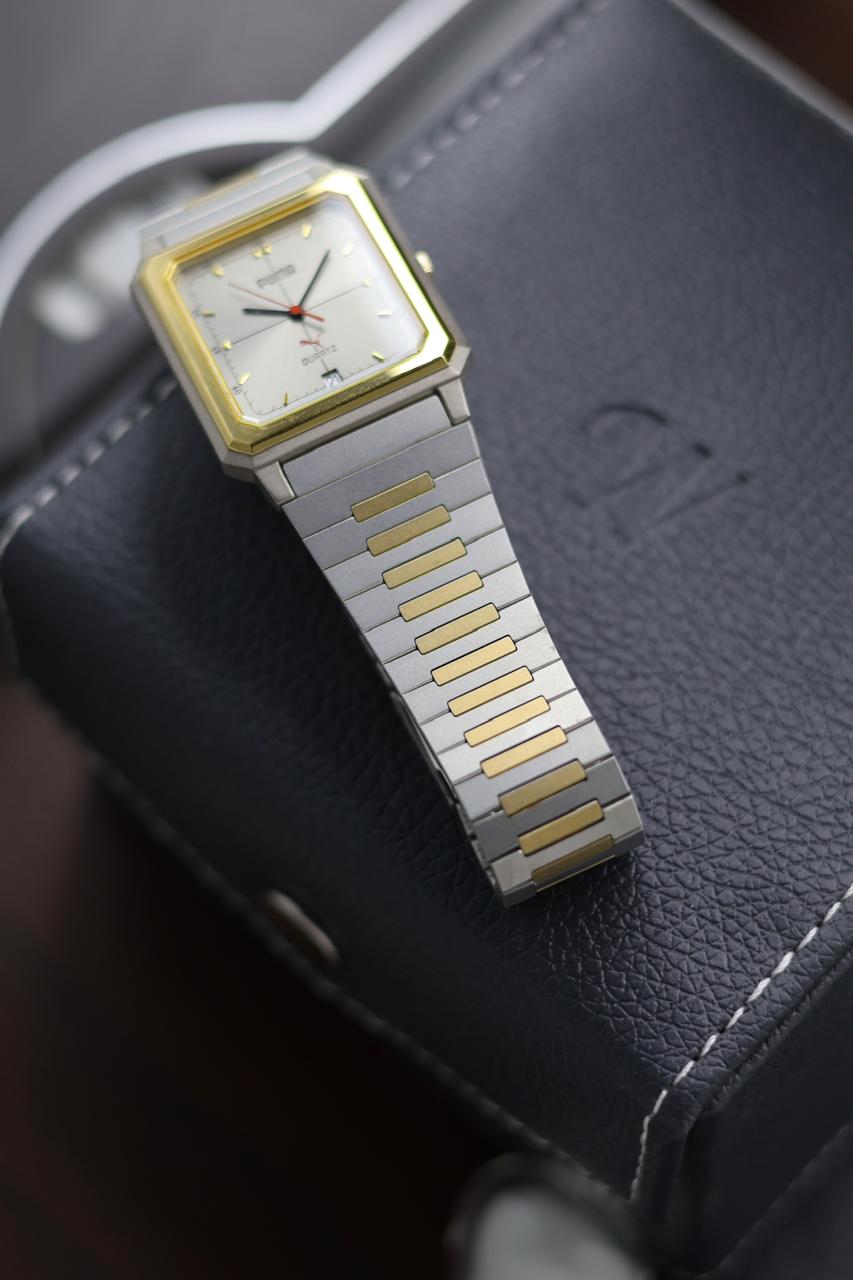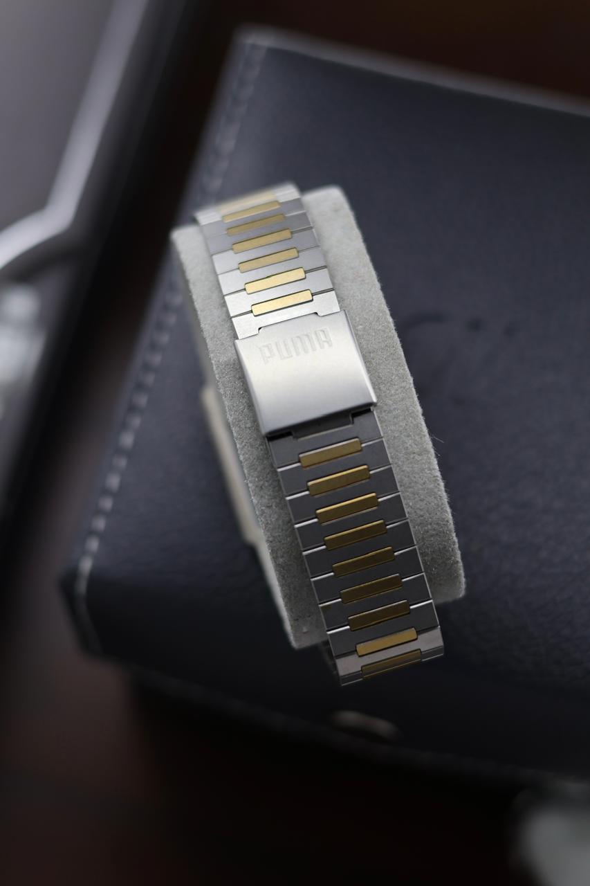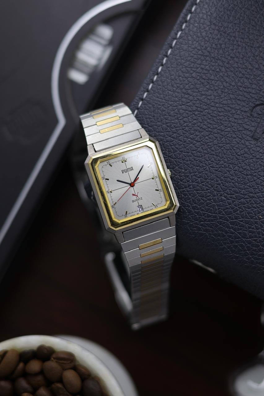 (JDM - Extremely Rare) Limited Edition ORIENT X PUMA Slim Tank Style Two Tone Silver Sunray Dial - Quartz Vintage Watch (Pre Owned) - A366