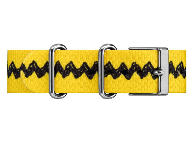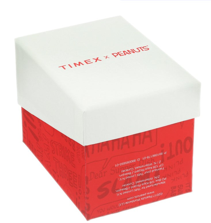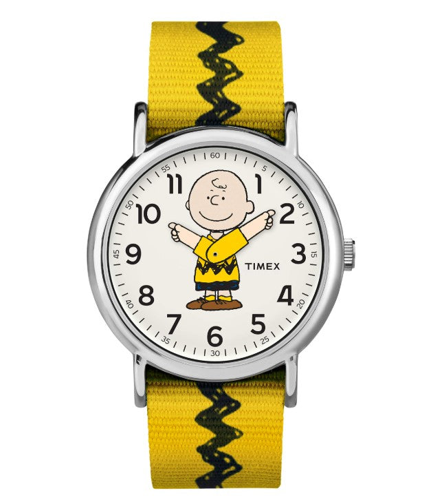 Let Charlie Brown tell the time. Timex has teamed up with the Peanuts gang to put your favorite characters on your wrist. Charlie’s arms move as the watch hands and the interchangeable slip-thru strap coordinates with his yellow and black zig-zag shirt. Also available in Snoopy Edition with a Red Fabric Strap.